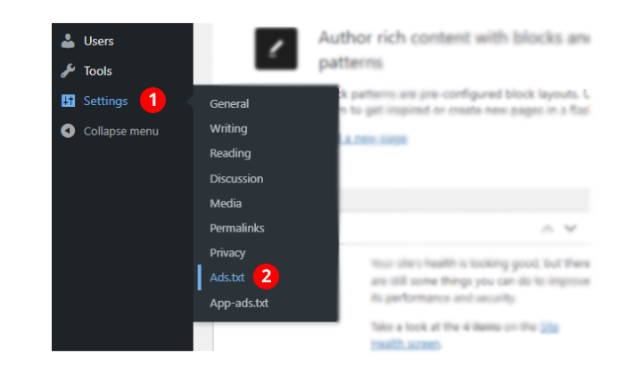 - Step 3: Navigate to Settings and click on Ads.txt