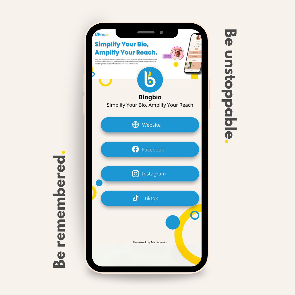 Blogbio is an all-in-one digital platform developed by Metaconex. It allows creators, publishers, and influencers to: